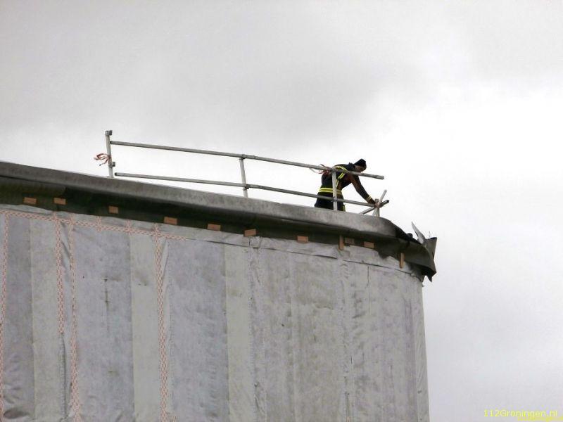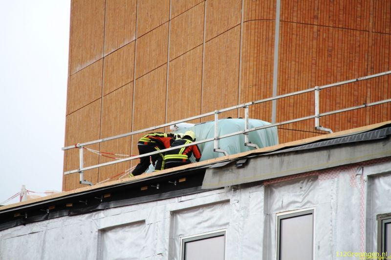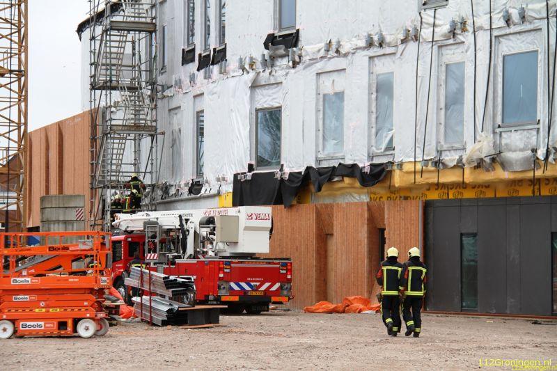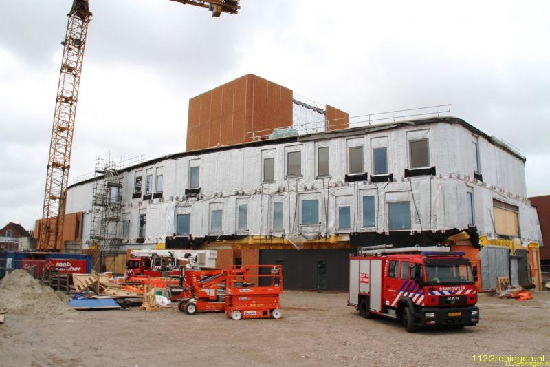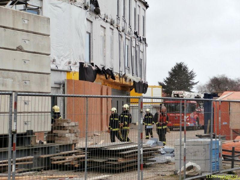 Op het bouwterrein van het nieuwe cultuurhuis van Winschoten waaiden diverse materialen van het dak door de harde wind. De brandweer is het dak opgegaan en heeft hier zo veel mogelijk materialen vastgemaakt zodat deze niet verder weg konden waaien. De gemeente kwam ook nog ter plaatse om te overleggen hoe het aan te pakken. Verder is er niets bekend wat er gedaan is.