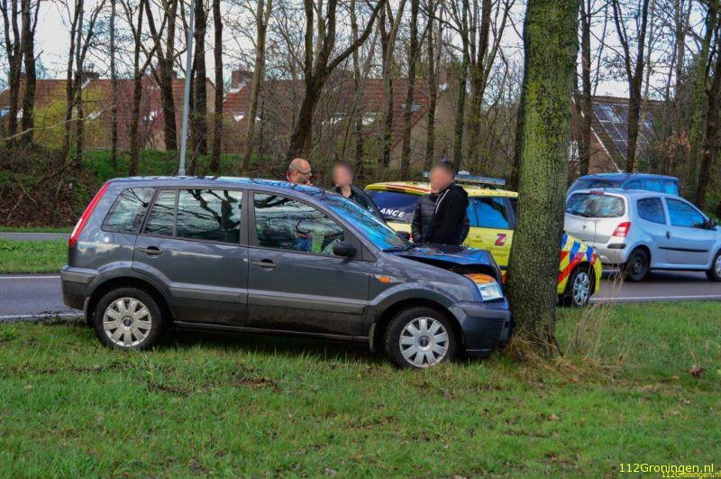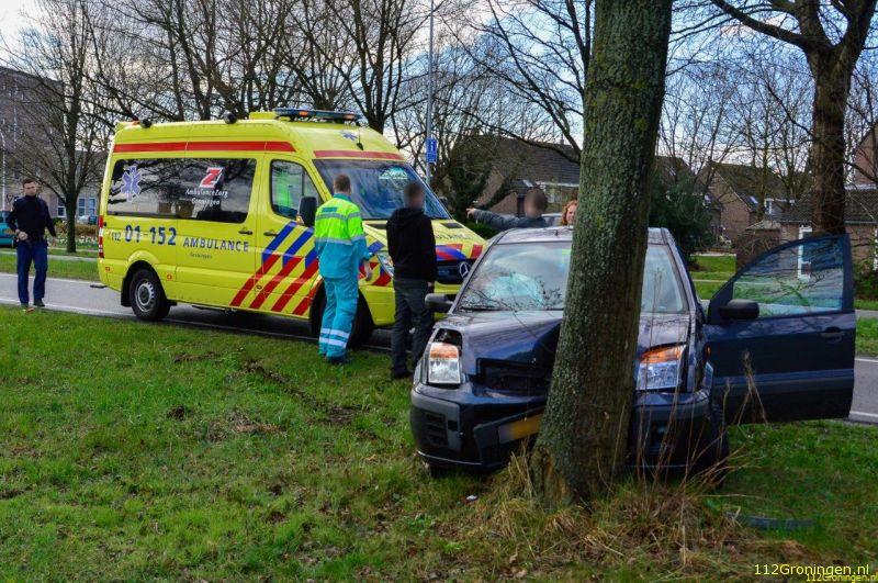 Stadskanaal - Op de Nautilusweg in Stadskanaal is vrijdagmiddag een auto met twee inzittenden tegen een boom gereden.