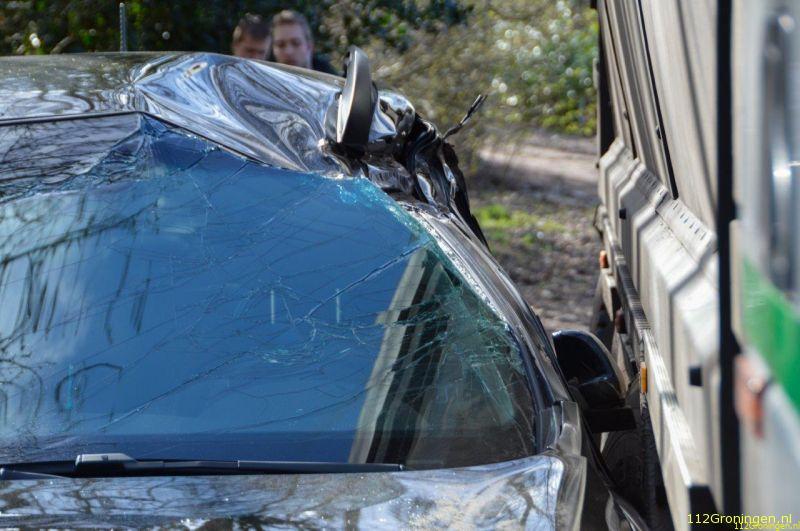 De vrachtwagenchauffeur had de auto over het hoofd gezien en reed er tijdens het achteruitrijden tegenaan. Ambulancemedewerkers hebben de vrouw uit de auto gehaald en behandeld. De vrouw had nek en rugklachten na het ongeval. Een bergingsbedrijf heeft de Duitse auto afgesleept en de vrachtwagen kon zijn weg vervolgen. De eigenaar van de auto is door de politie naar zijn woning in Bunde (D) gebracht.