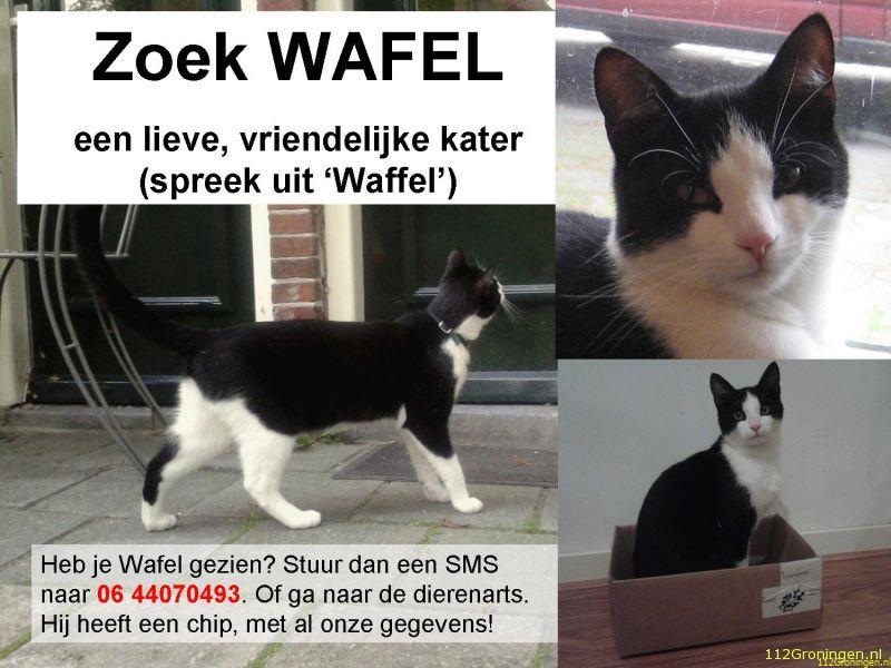 Groningen - Onze 2-jarige kater Wafel is weggelopen van zijn logeeradres in de Oosterpoort, en waarschijnlijk onderweg naar ons huis in de Hortusbuurt. Hij kan dus overal in de stad zijn.
