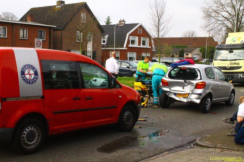 Sappemeer - Bij een kop-staart botsing op de Noorderstraat in Sappemeer zijn maandagochtend twee personen gewond geraakt.