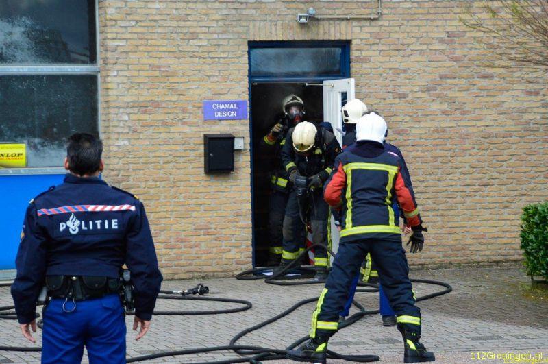 In een kast was brand ontstaan dat gepaard ging met veel rookontwikkeling. Een camper die naast de brandende kast stond is door de hitte beschadigd. Nadat de brand onder controle was kon de brandweer het pand ventileren. De eigenaar van het bedrijf kon het pand op tijd verlaten.
