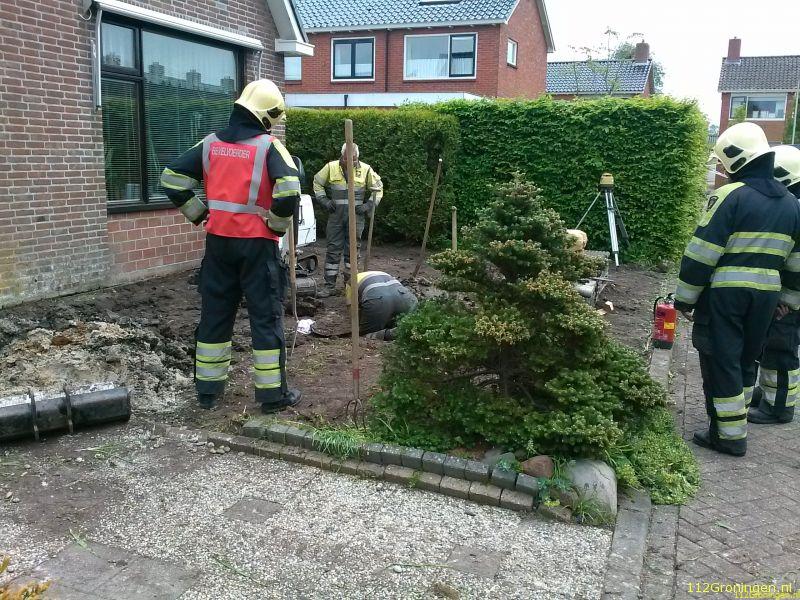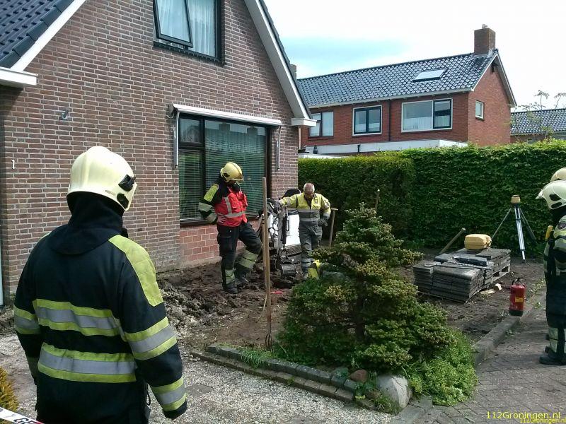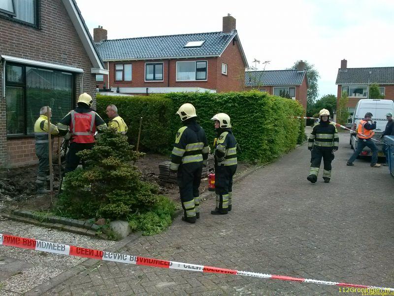 Bedum - In een tuin bij een woning aan de Witte de Withstraat in Bedum is dinsdagmiddag 6 mei tijdens werkzaamheden door een tuinbedrijf een gasleiding stuk getrokken.