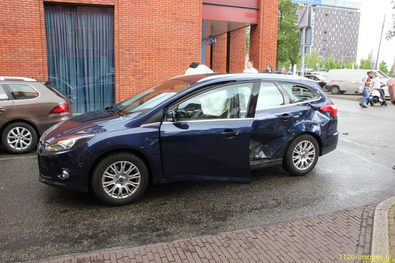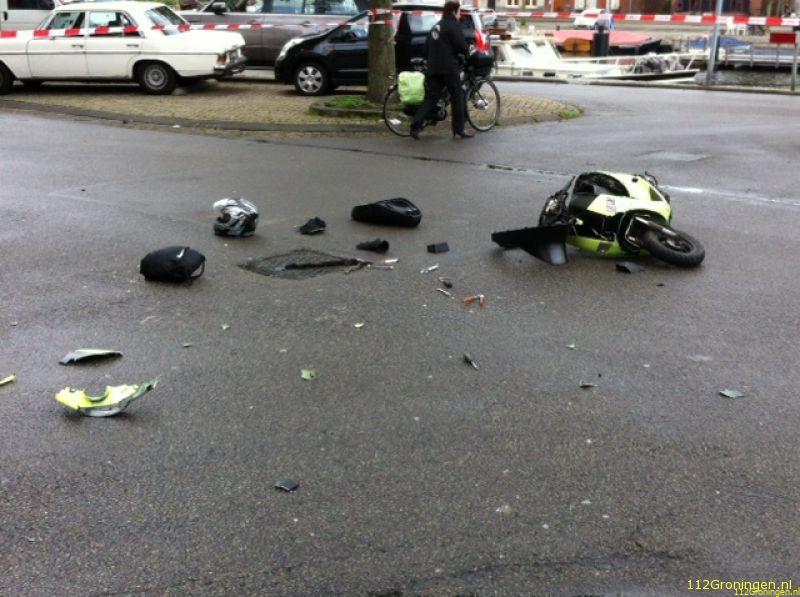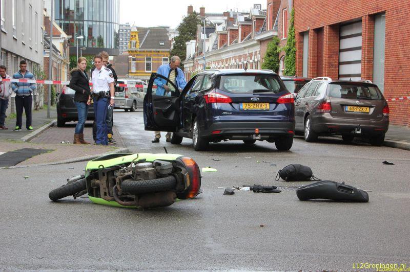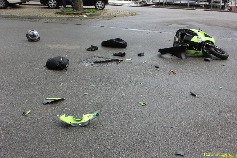 Groningen - Een 17-jarige scooterrijder kwam er woensdagmiddag vrij goed vanaf toen hij met zijn scooter in de zijkant van een auto reed op de Oosterkade in Groningen.