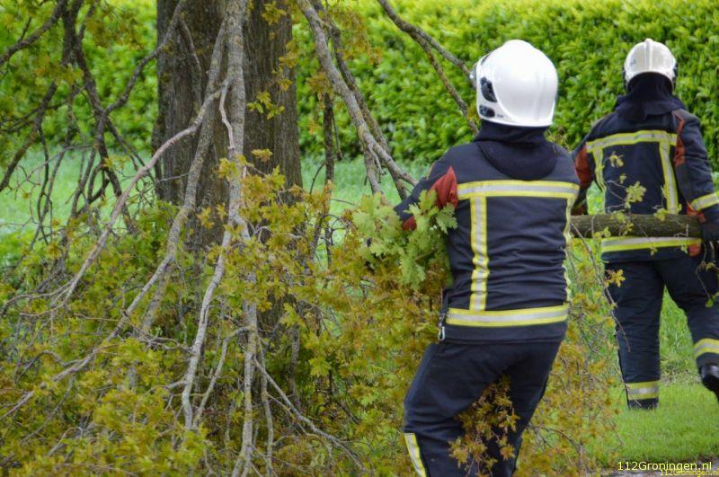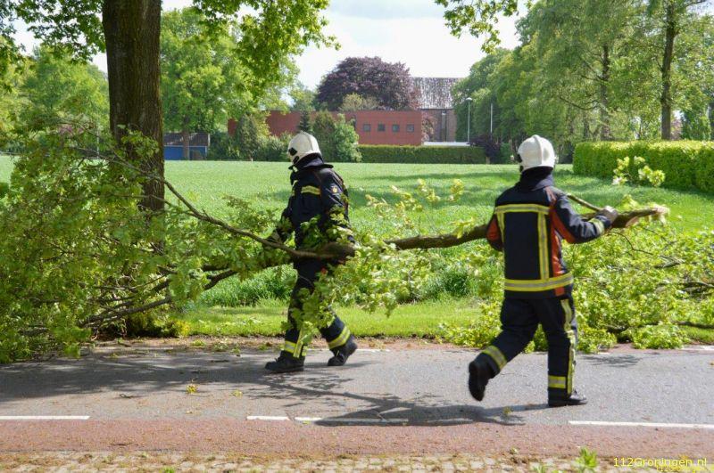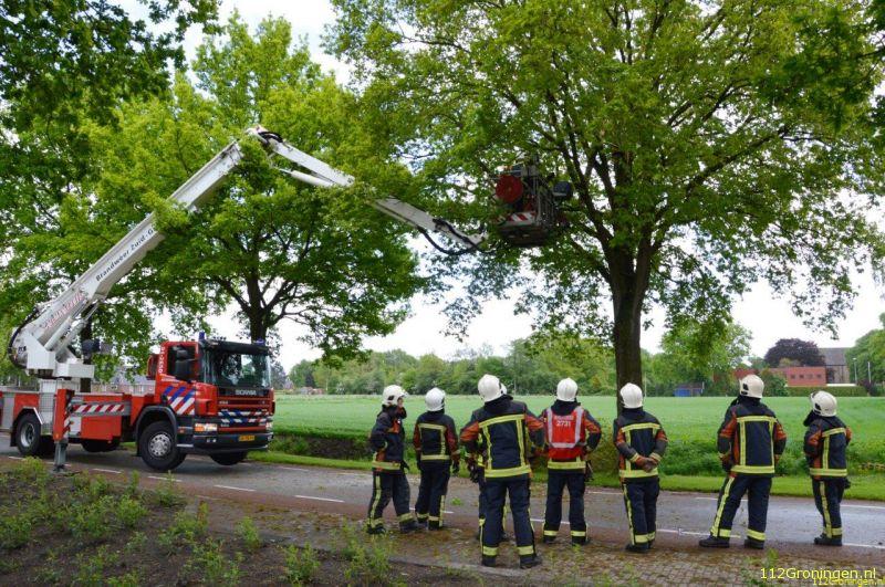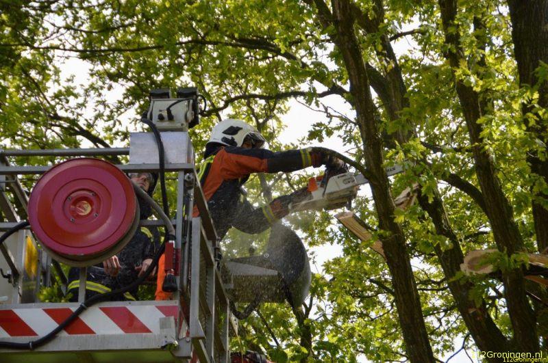 Terwijl de brandweer en politie de weg dicht hadden gezet en assistentie hadden gevraagd van de hoogwerker uit Stadskanaal brak de tak ook al los. Met behulp van de Hoogwerker en een kettingzaag is de laatste stukje van de tak los gezaagd. De brandweer heeft de takken in de berm gelegd, deze zullen later door de gemeente opgehaald worden.