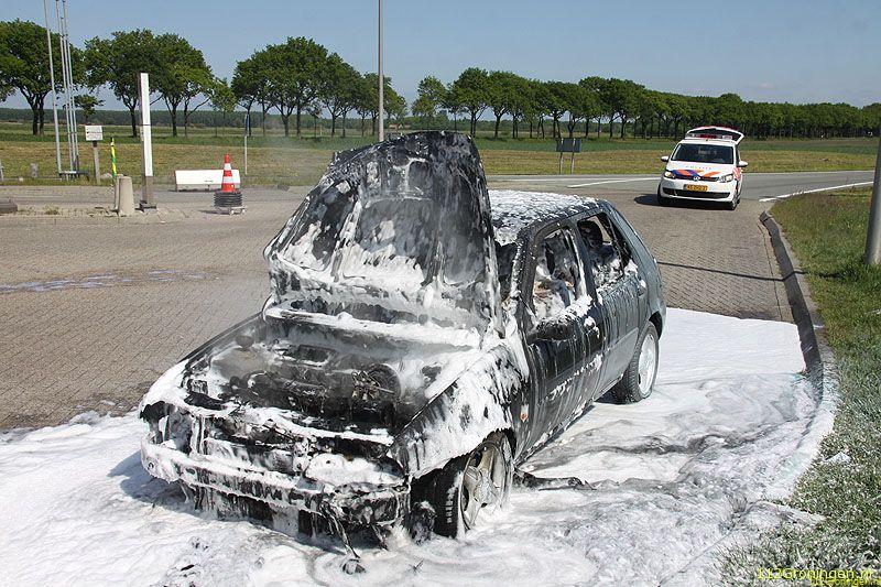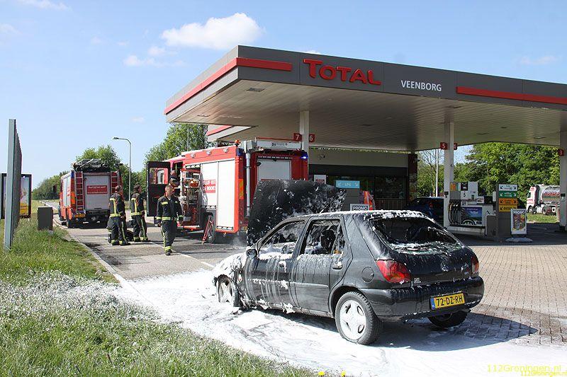 Scharmer - Bij tankstation Veenborg aan de A7 tussen Hoogezand en Groningen heeft zaterdagmiddag een auto in brand gestaan.