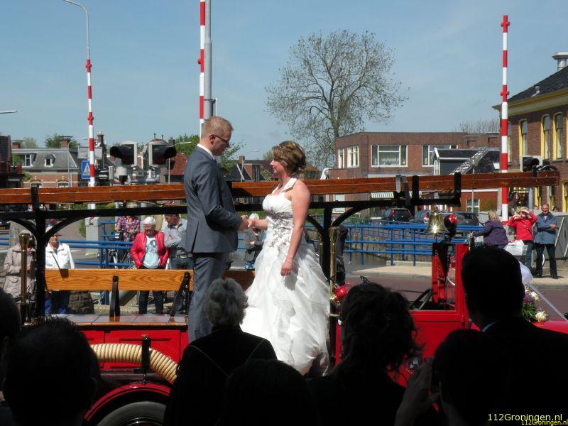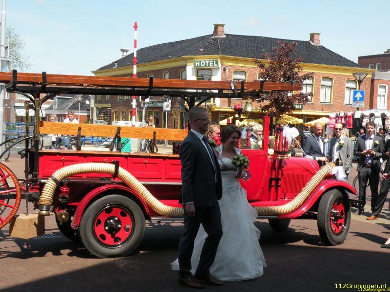 Chris die als 4e generatie brandweerman bij de brandweer in Bedum is mocht met zijn aanstaande bruid een mooie speeche aanhoren over zijn en Froulien haar leven. Toen de officiele ceremonie zou beginnen om elkaar het JA-woord te geven gaf de ambtenaar aan met zijn allen naar buiten te om daar letterlijk op de brandweerauto elkaar het JA-woord te geven.