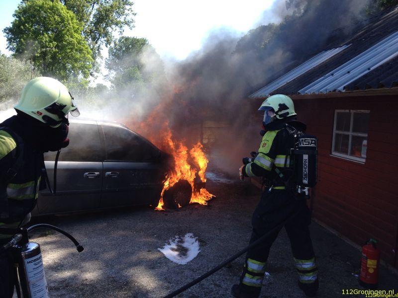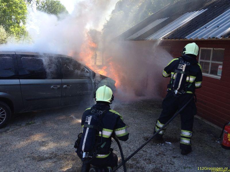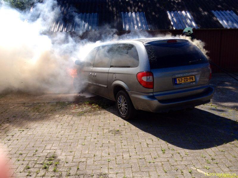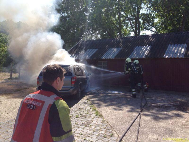 Bij aankomst van de brandweer stond de auto in lichterlaaie. De oorzaak is onbekend.