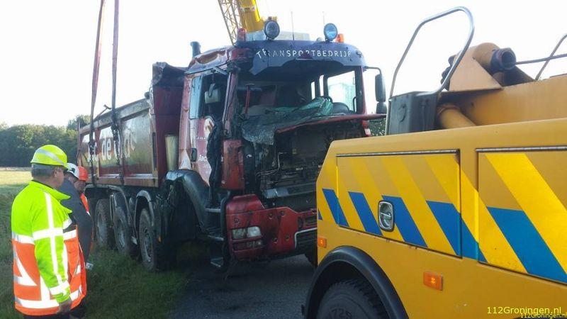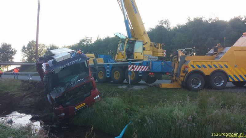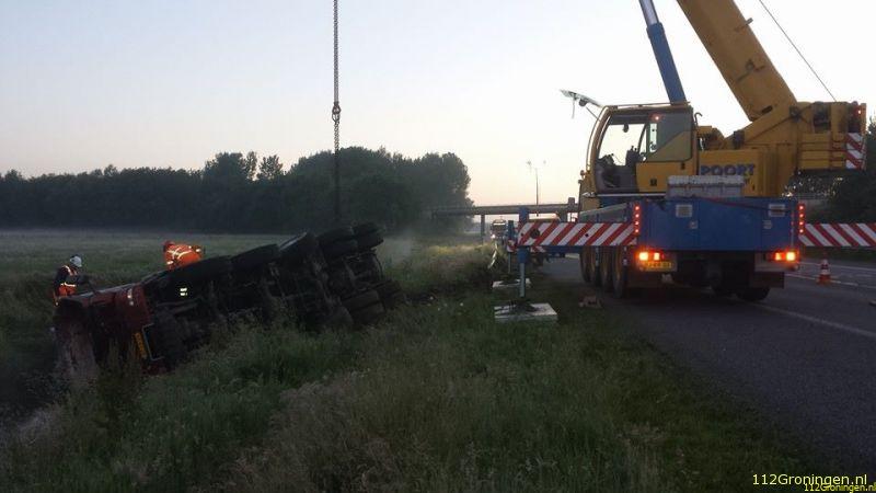De toedracht van dit ongeval is nog niet bekend maar de chauffeur bleef ongedeerd en de vrachtwagen liep aanzienlijke schade op.