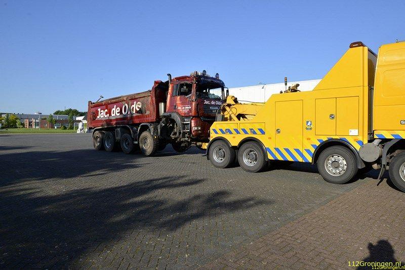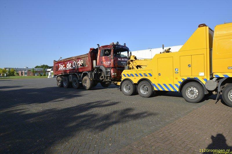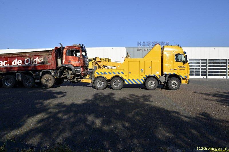 Berger Hamstra uit Tynaarlo heeft samen met berger Poort Hoogkerk enkele uren nodig gehad om de vrachtwagen te bergen.