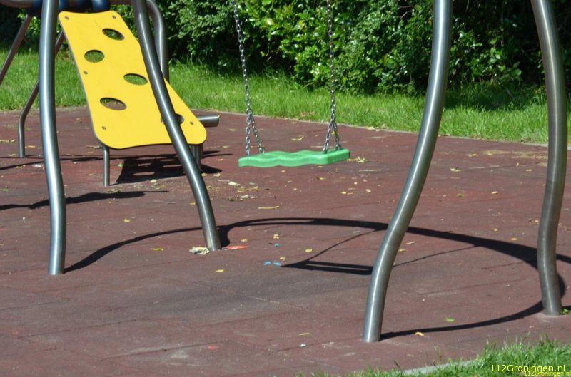Daar was in een speeltuin aan 't Zuden een jongetje van de schommel gevallen.