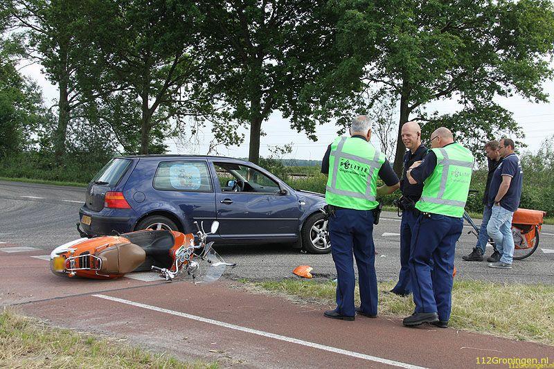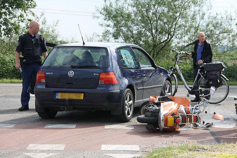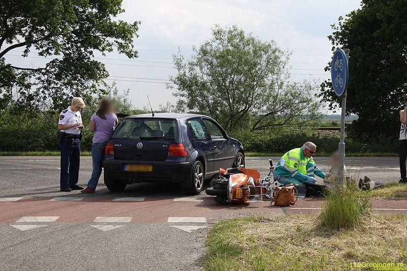 De scooter waarop zij zat botste, door waarschijnlijk een voorrangsfout van een automobiliste, op de auto. De vrouw is door medewerkers van de ambulancedienst behandeld en later met letsel aan de schouder overgebracht naar het ziekenhuis.