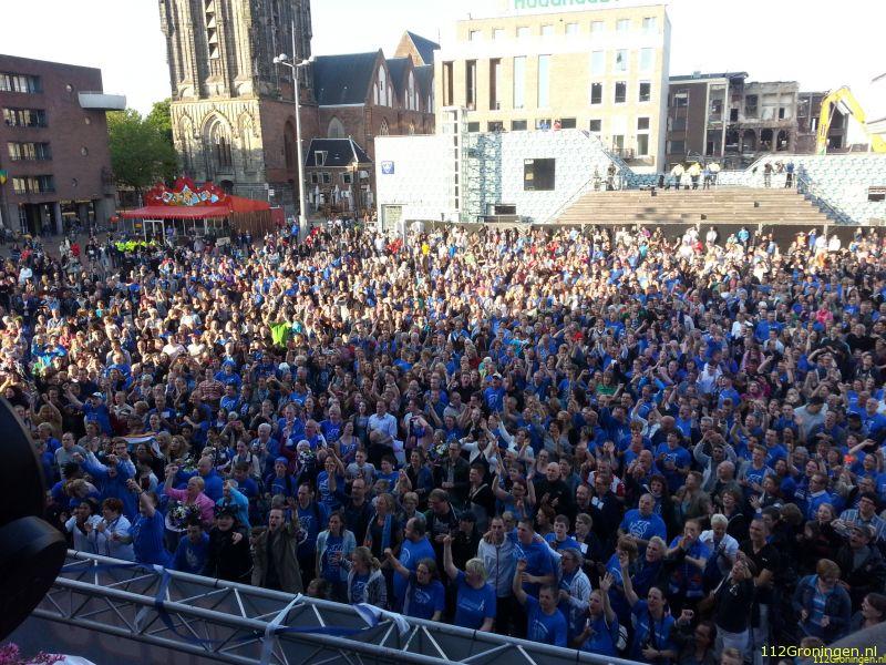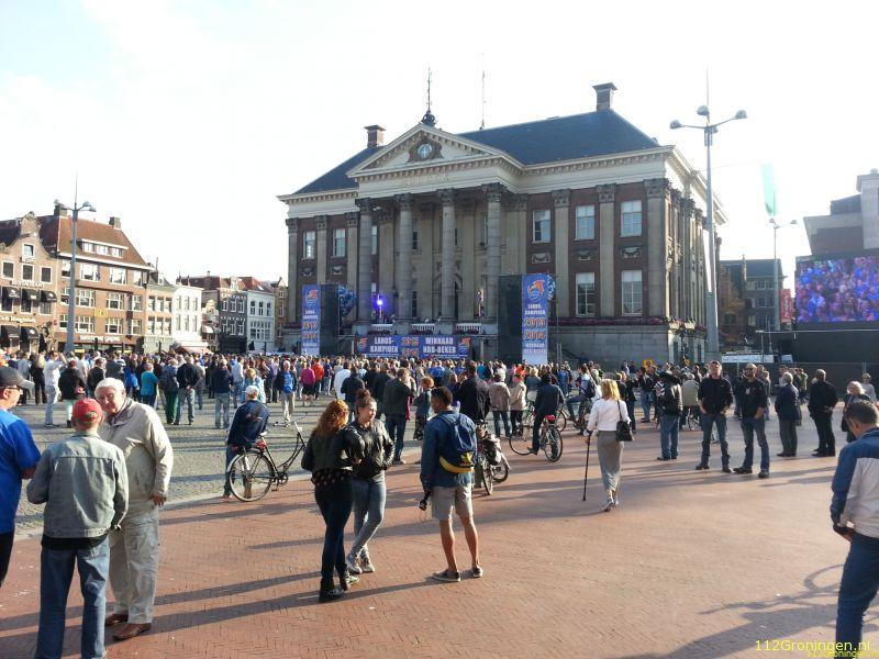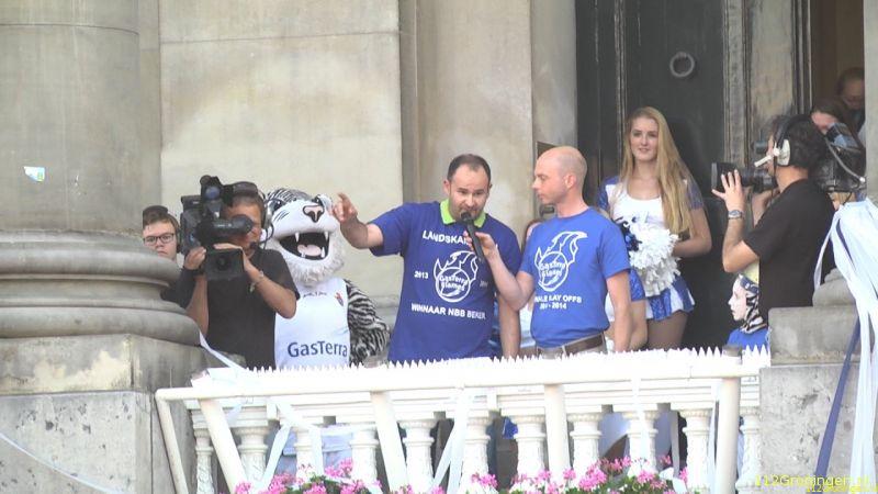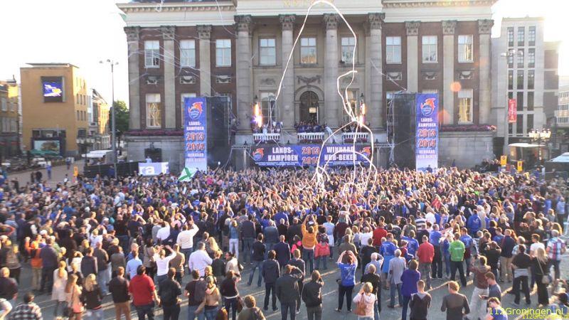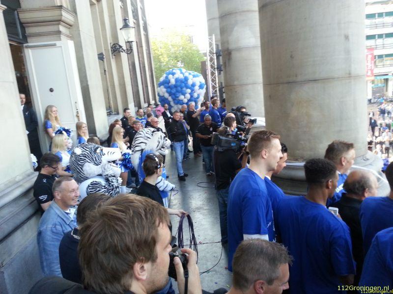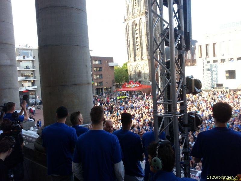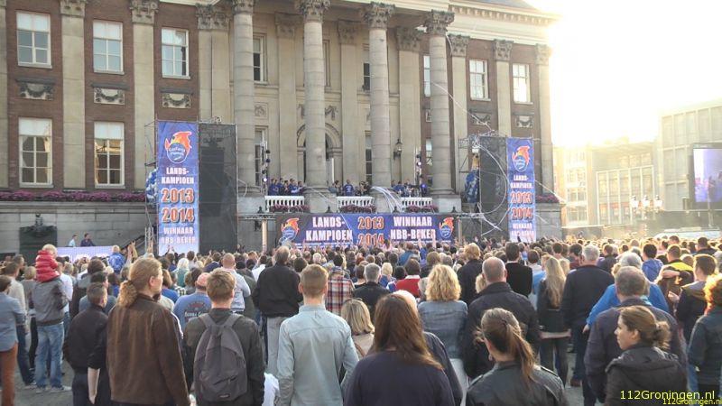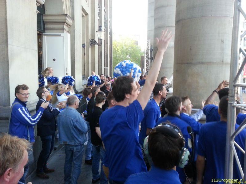 Toch was het minder druk dan de vorige week bij de huldiging van Fc Groningen. DE LOco Burgemeester sprak eerst de spelers in het stadhuis, daarna kwam men het bordes op.