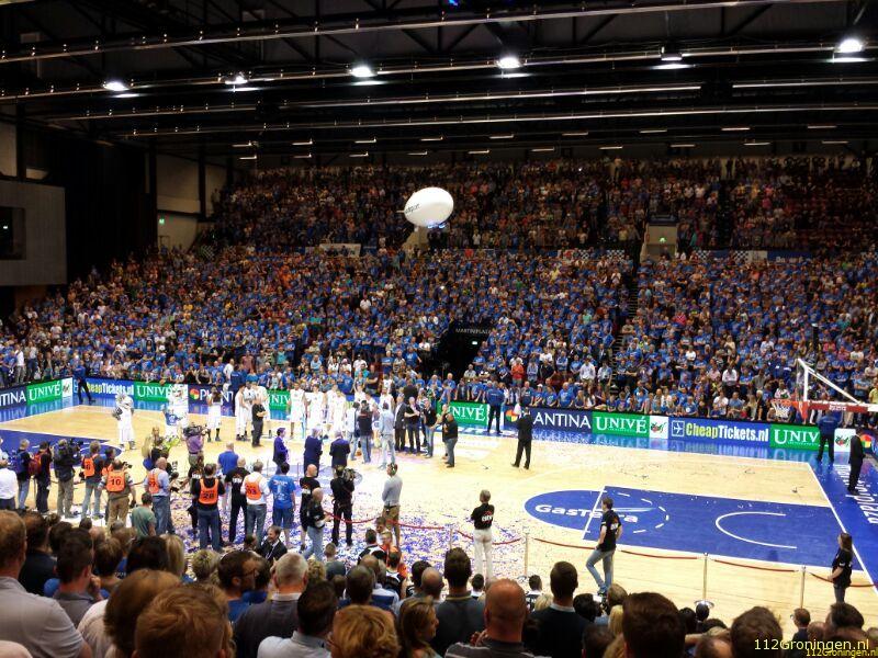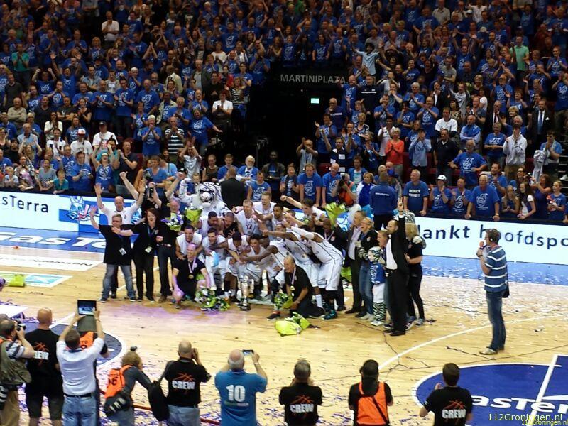 Groningen - De Gasterra Flames zijn maandagavond om 19:30 uur gehuldigd op de Grote Markt. Gasterra Flames werd zondagmiddag landskampioen. Veel mensen kwamen op net feestje af in de stad.