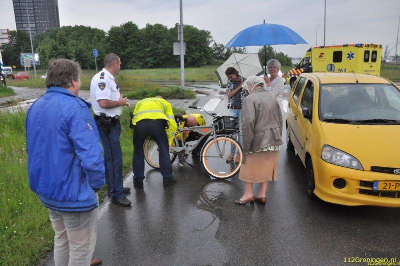 Groningen - Een 30-jarige fietsster uit Groningen raakte woensdagavond gewond bij een aanrijding op de Rijskweg in haar woonplaats.