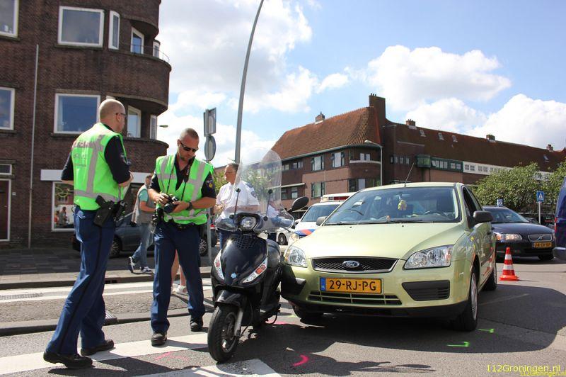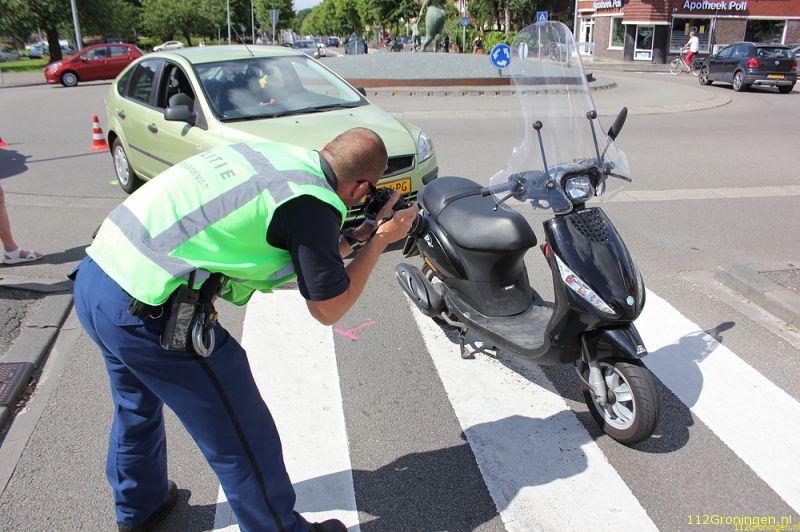Groningen - Bij een ongeval op de rotonde bij de Korreweg is donderdag een brommerrijder gewond geraakt.