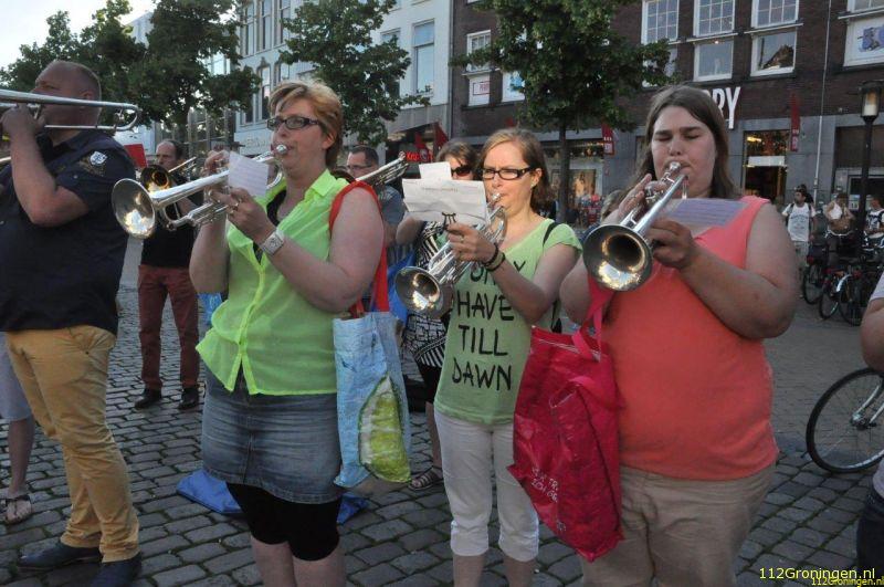 Daarom was vorige week donderdagavond om 19:45 uur een flashmob al georganiseerd. Men begon met 1 muzikant en binnen 10 minuten speelden 100 muzikanten samen een mooi nummer. Een groot succes was het. De toegang zaterdag is gratis.