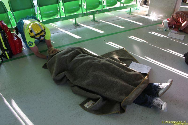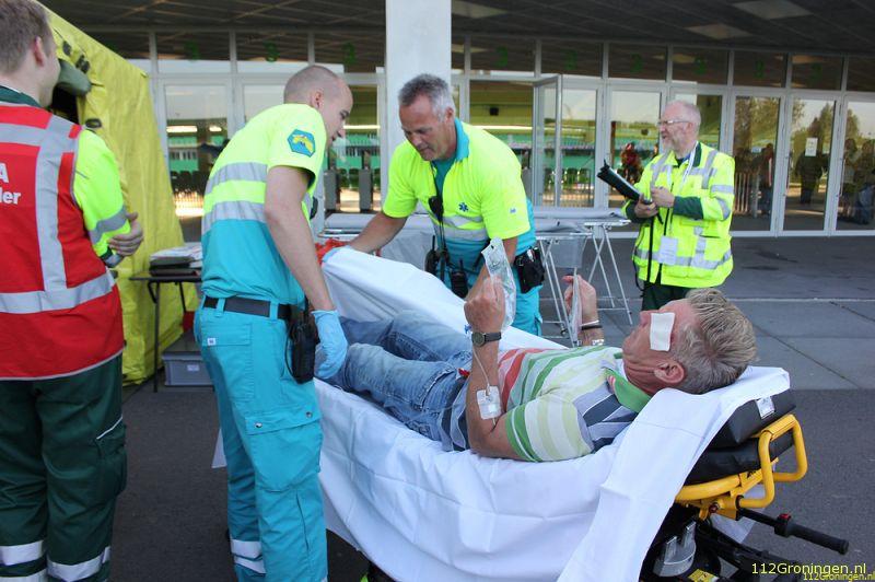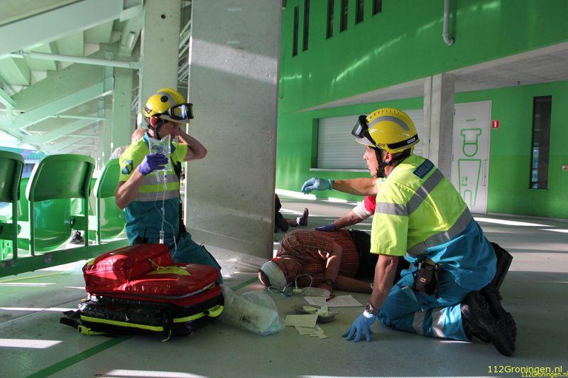 Groningen - De Euroborg in Groningen was donderdagavond het toneel van een grote hulpverleningsoefening van het SIGMA-team samen met AmbulanceZorg Groningen en het EHBO-team van de Euroborg.