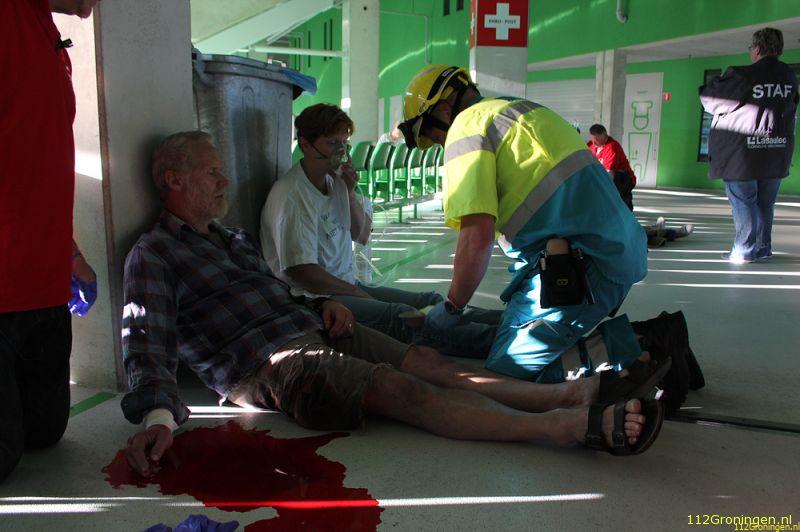 Er werd geoefend op het helpen en opvangen van 14 gewonden na een massale vechtpartij in een supportersvak de Euroborg. Leden van het SIGMA-team moesten een gewondennest opzetten en de gewonden daar behandelen voordat ze per ambulance werden overgebracht naar een ziekenhuis.
