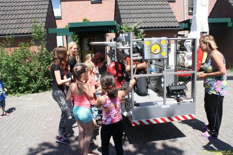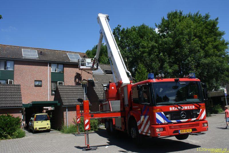 De hoogwerker kwam ter plaatse. Eenmaal ter plaatse bleek het te gaan om een kat die in de dakgoot zat. Drie week terug zat er ook een kat in de dakgoot dit was aan de Nijesteinheerd. De eigenaresse had de brandweer zelf gebeld. De kat zat er sinds gisteren. Een brandweerman ging in het bakje omhoog met de kooi van de eigenaresse.