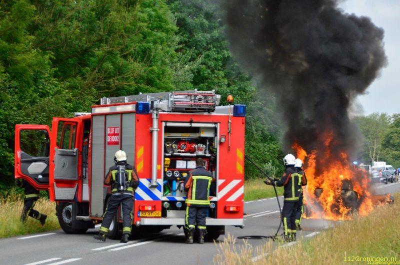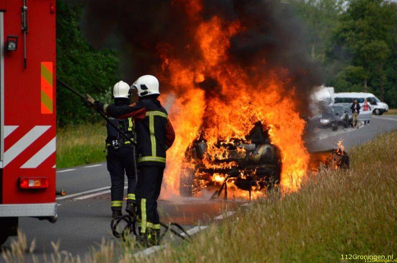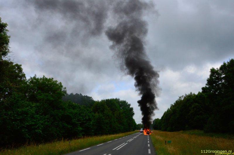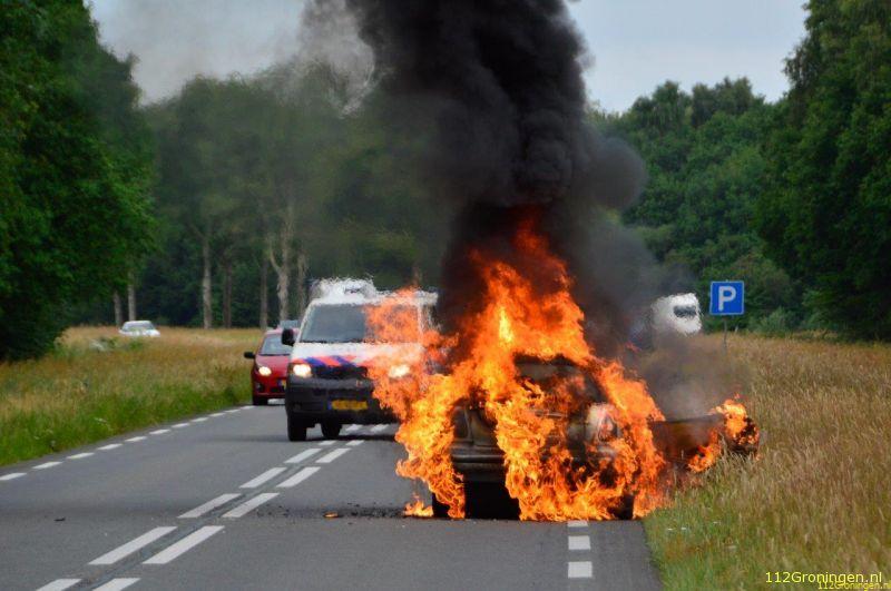 Nieuw Buinen - Op de N374 ter hoogte van Nieuw Buinen is dinsdagmorgen een auto uitgebrand.