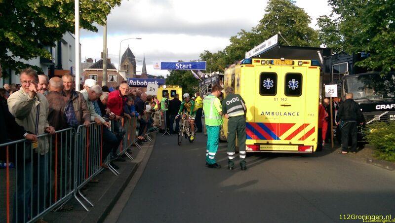 Eén van de wielrenners werd op de Molenweg in een tussensprint door een andere wielrenner aangetikt. Hierdoor belandde de wielrenner in de dranghekken. Twee toeschouwers, een 10-jarige jongen en een man van 70, raakten hierdoor gewond. Zij zijn met onbekende verwondingen overgebracht naar het ziekenhuis.