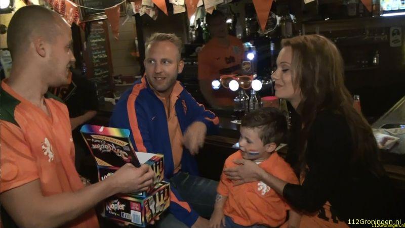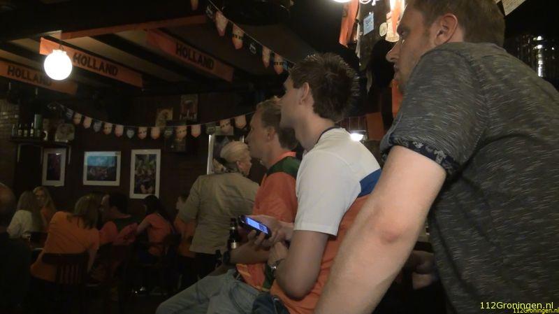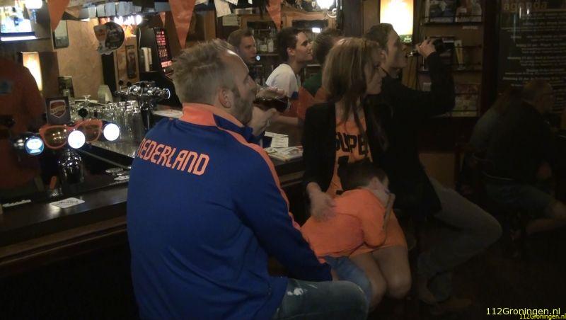 Nederland won met 2-3 van Australië woensdagavond. Om dit te vieren kregen de kijkers in café ‘T Mingelmouse in Stadskanaal voor elk doelpunt dat Nederland scoorde een gratis shotje. Ondanks dat de sfeer even wat wegzakte bij de 2-1 achterstand werd er weer volop genoten nadat Van Persie de 2-2 maakte.