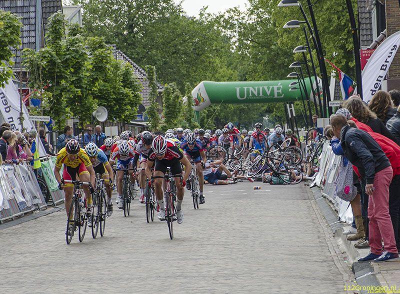 Ureterp (Friesland) - Op 75 meter voor de finish van het NK wielrennen zijn zaterdagmiddag 4 gewonden gevallen.