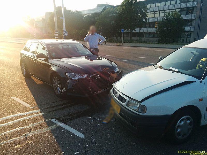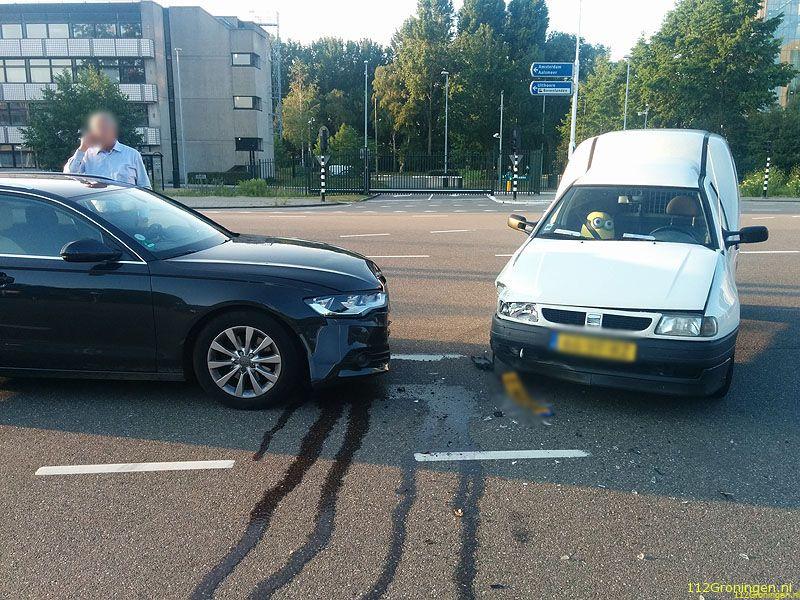 Amstelveen - Op de Groenlaan in Amstelveen zijn maandagavond twee Groningers op elkaar gebotst. De bestuurder van de witte bestelauto sloeg linksaf en zag plots de andere auto, die hem tegemoet kwam en rechtdoor ging, op zich af komen.