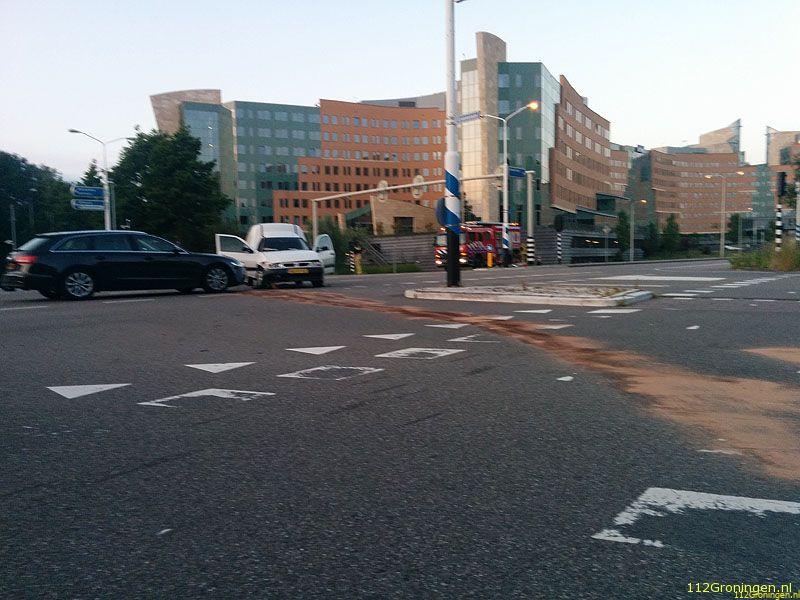De politie wou in eerste instantie niet komen aangezien er geen sprake was van letsel. Een passerende brandweerman heeft zijn collega's gebeld en die kwamen kijken of ze iets konden betekenen. Op hun verzoek kwam er toch politie ter plaatse en ook is de bestuurder van de bestelauto wegens nekklachten nog nagekeken door ambulancepersoneel maar hij hoefde niet mee naar het ziekenhuis. De oorzaak van het ongeval is onduidelijk, beide bestuurders weten zeker dat ze groen hadden. De auto's zijn afgesleept.