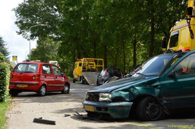 Eén van de auto’s wilde links afslaan en raakte daarbij een tegemoetkomende auto. Door de aanrijding kwam deze auto tegen een container aan die langs de weg stond en raakte ook de daarachter geparkeerde auto. Wonder boven wonder raakte niemand gewond. Bergingsbedrijf Willem Keizer heeft alle drie de auto’s afgesleept en de container weer op zijn plaats gezet.