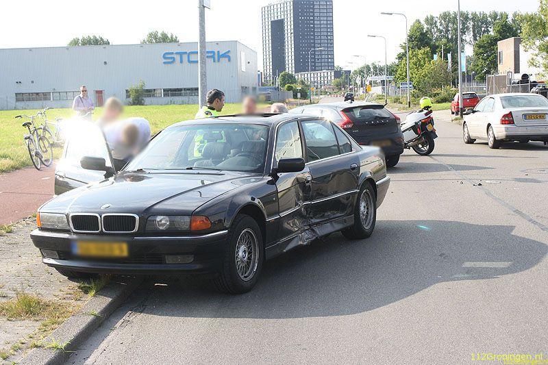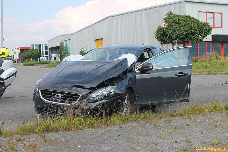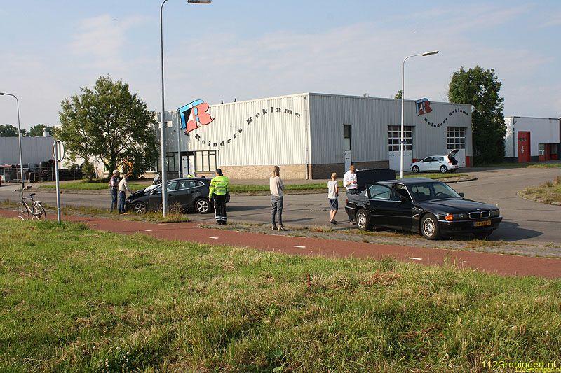 Groningen - Twee auto's zijn donderdagavond door een voorrangsfout op de kruising Wismarweg met de Stettinweg op industrieterrein Driebond in Groningen in botsing gekomen.