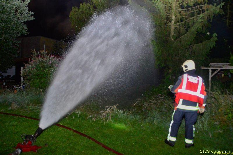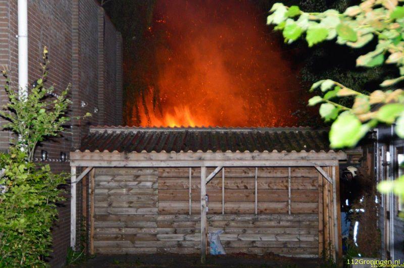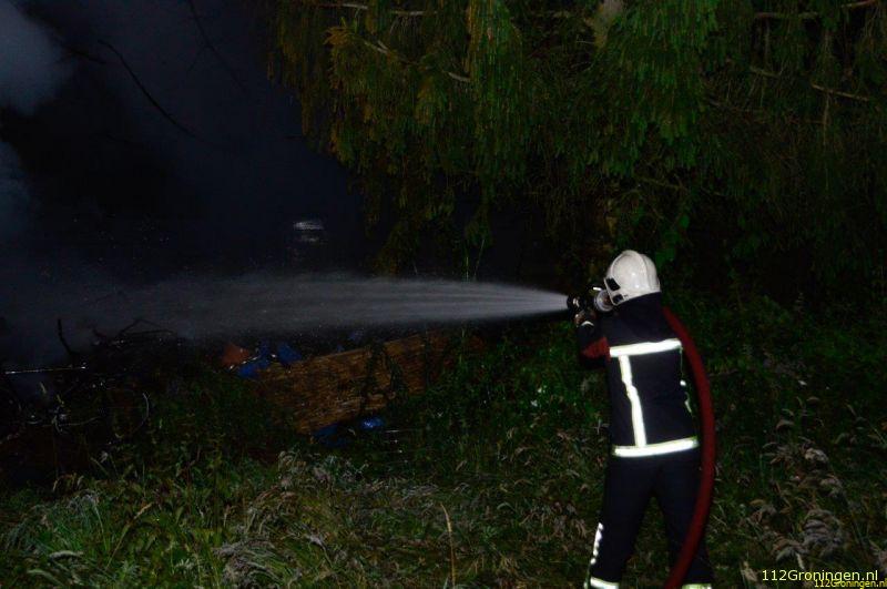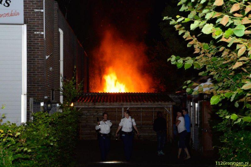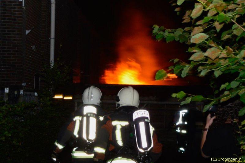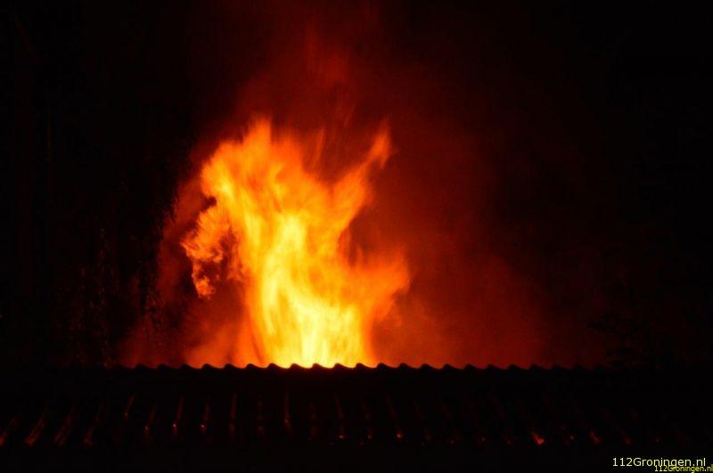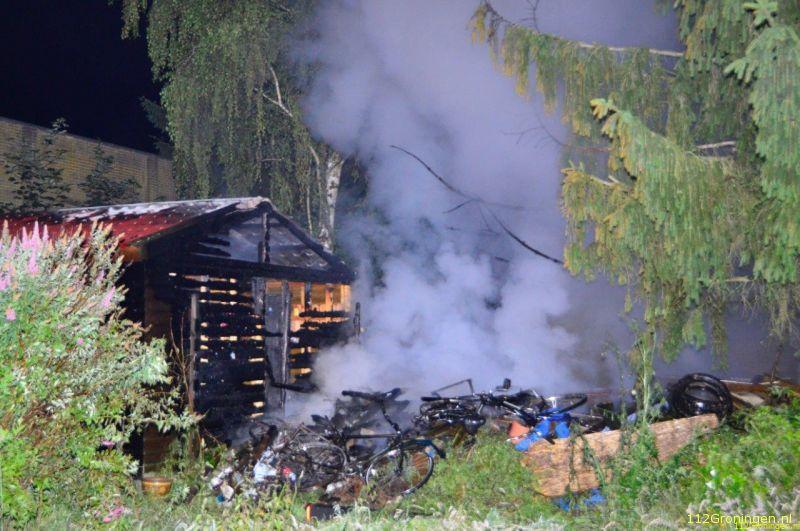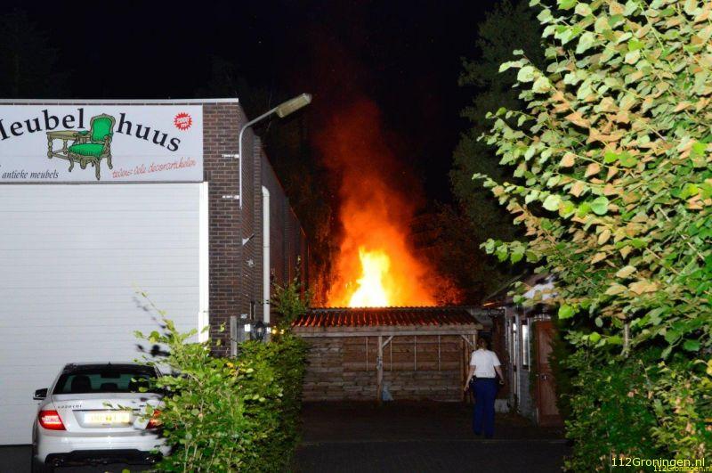 Ter plaatse bleek er een schuurtje vol rommel in brand te staan dat over dreigde te slaan naar de naastgelegen loods. De brandweer heeft het vuur in eerste instantie met twee stralen hogedruk bestreden. Nadat de vlammen uit waren had de brandweer nog ongeveer twee en half uur nodig om het in elkaar gezakte schuurtje na te blussen.