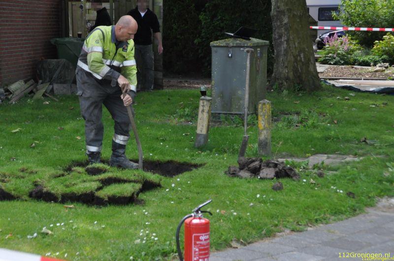 Stedum - Door werkzaamheden is maandag aan het begin van middag een gaslek ontstaan naast een woning aan de Weemweg.