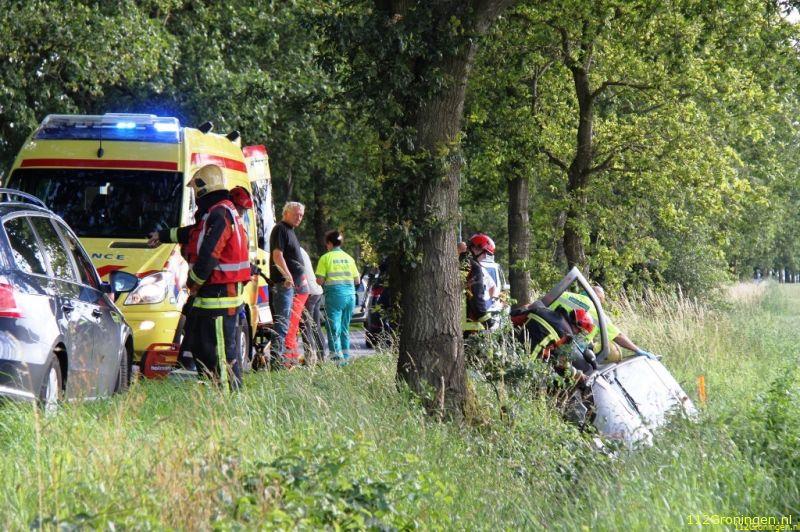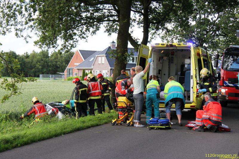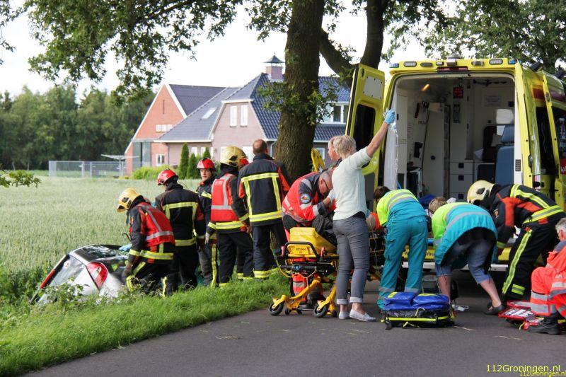 De 48-jarige bestuurder uit Hoogezand en zijn 51-jarige bijrijder uit Noordbroek raakten beiden gewond en werden met onbekende verwondingen naar het ziekenhuis gebracht. Volgens een getuige reed de auto vanuit de richting Sappemeer en kwam door nog onbekende oorzaak in de rechterberm terecht.