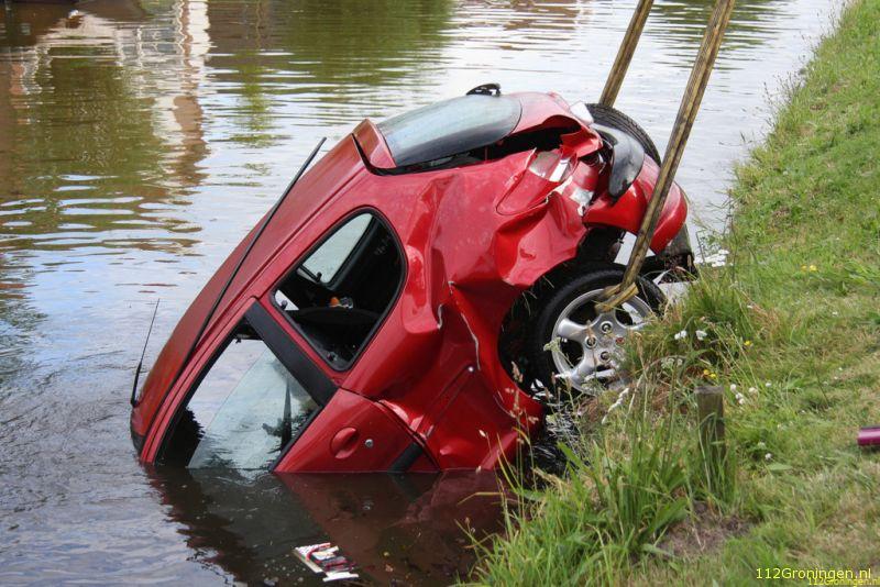 Wildervank - Op de Poststraat in Wildervank is maandagavond een auto het water in gereden. Niemand raakte gewond.
