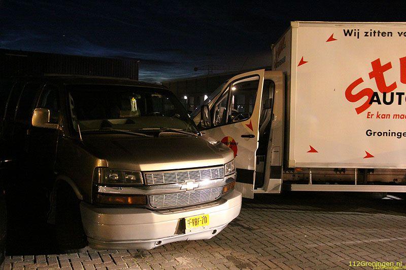 Hoogezand - Een busje van een verhuurbedrijf is in de nacht van donderdag op vrijdag door waarschijnlijk een klapband van de weg geraakt en tegen een geparkeerde busje van een garagebedrijf tot stilstand gekomen.