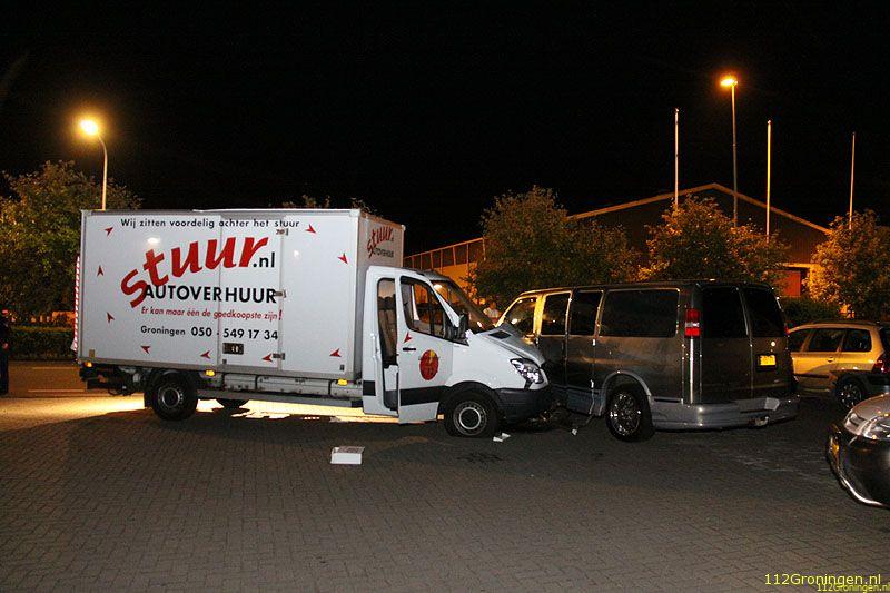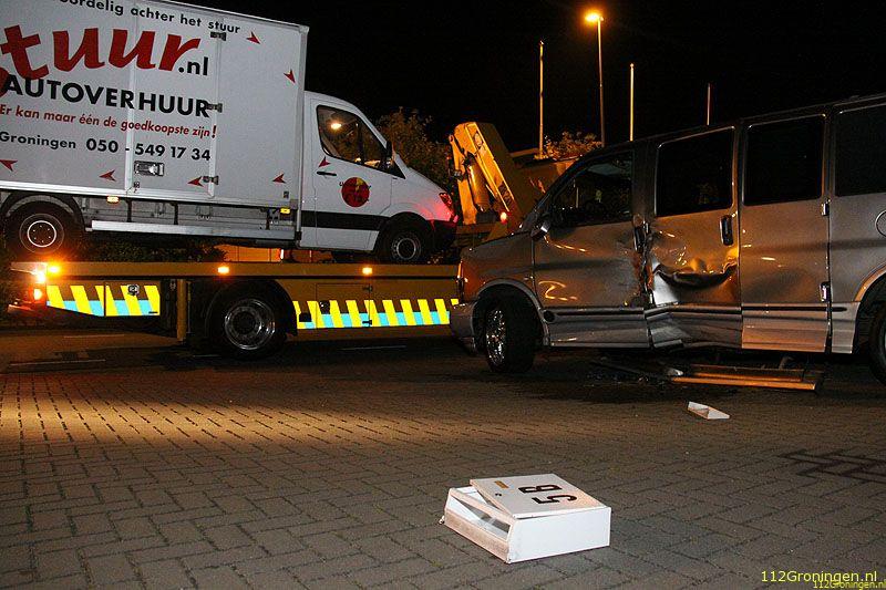 Het ongeval gebeurde op de Produktieweg in Hoogezand. De bestuurder van het busje en een inzittende zijn beide na behandeling ter plaatsen overgebracht naar het ziekenhuis in Groningen. De eigenaar van de garage had de busje net opgeknapt en was van plan om daarmee op vakantie te gaan. Het busje van de verhuurbedrijf is door een bergingsbedrijf afgevoerd.