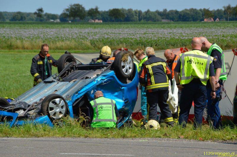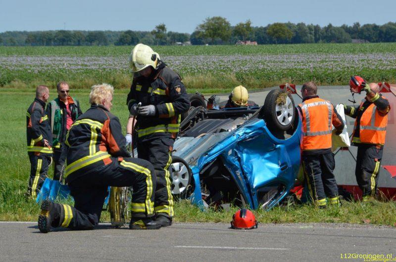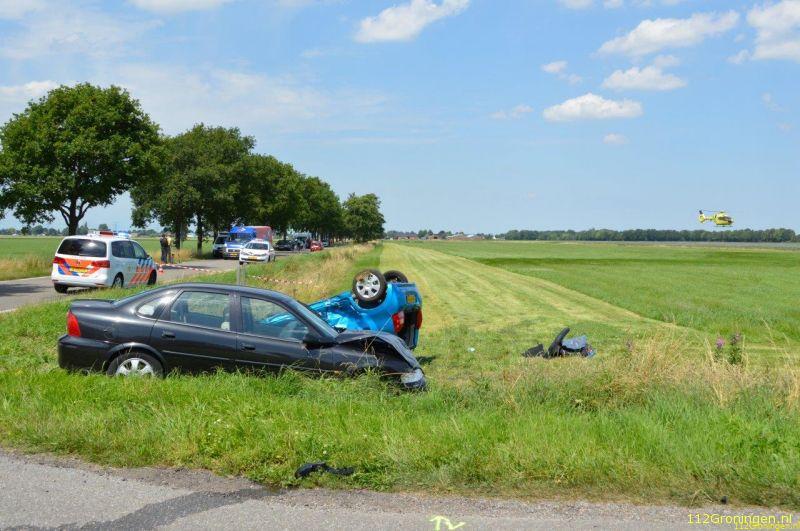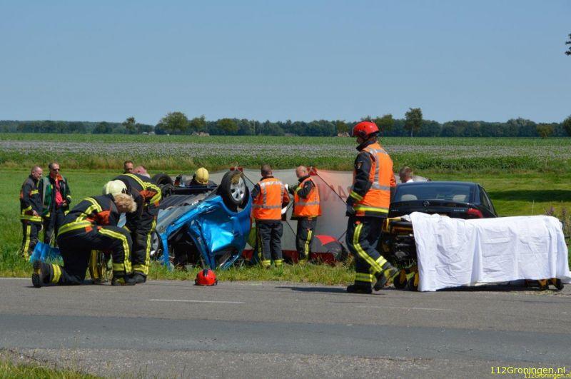 Bij het ongeval zijn beide auto’s in het weiland beland waarvan één over de kop is geslapen. De brandweer heeft drie personen uit de blauwe auto die over de kop lag gehaald. De bestuurder van de Opel is zelf uit de auto gekomen. Alle inzittenden zijn met onbekende verwondingen naar het ziekenhuis vervoerd.