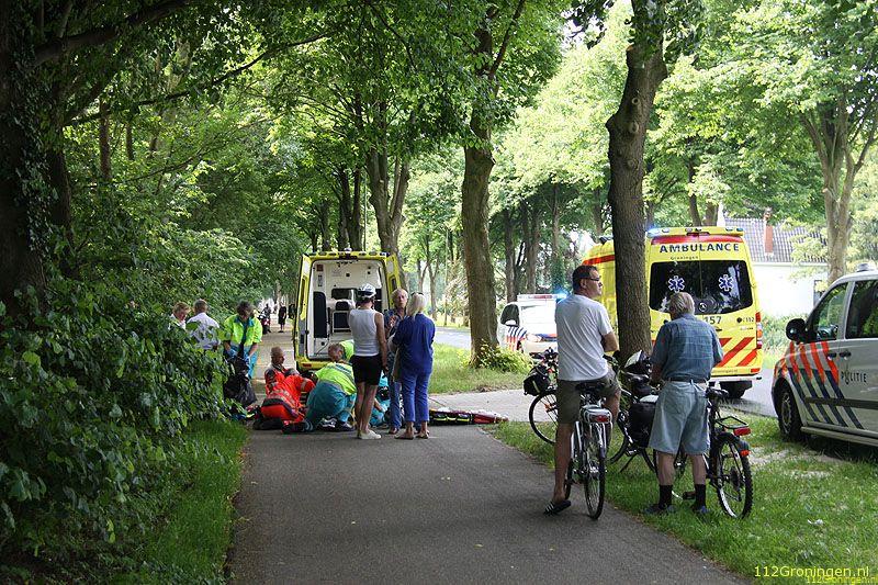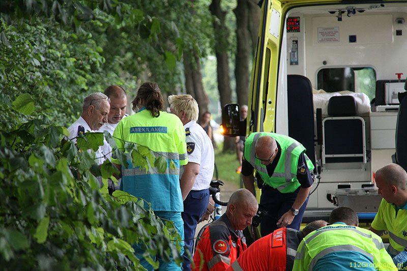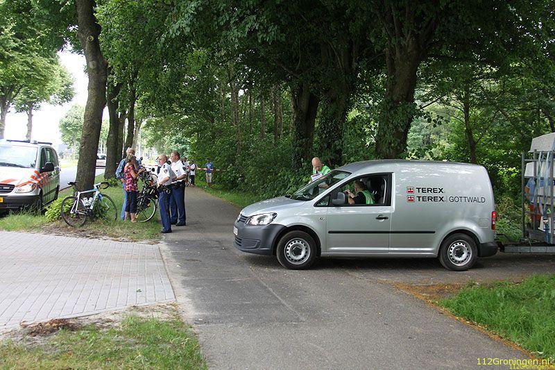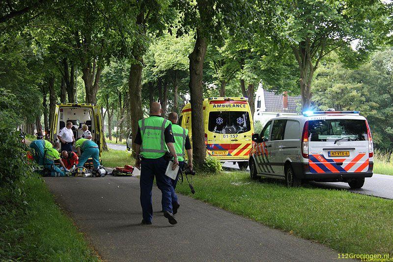 De wagen met aanhanger, bestuurd door een 26-jarige inwoner van het Belgische Berendrecht, kwam uit een uitrit en wilde de Woldweg opdraaien. De bestuurder verklaarde dat hij door de bomen de man op het fietspad niet had zien aankomen. De Winschoter werd met diverse verwondingen naar het ziekenhuis in Groningen vervoerd.