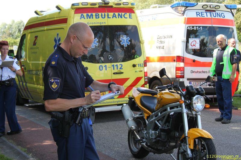 Bad Nieuweschans - Zondagmiddag botsen twee Duitse motoren op elkaar op de Europaweg in Bad Nieuweschans.