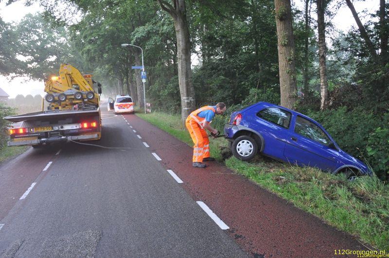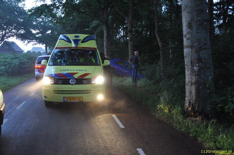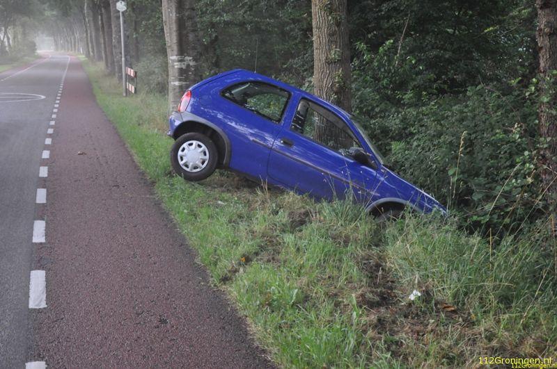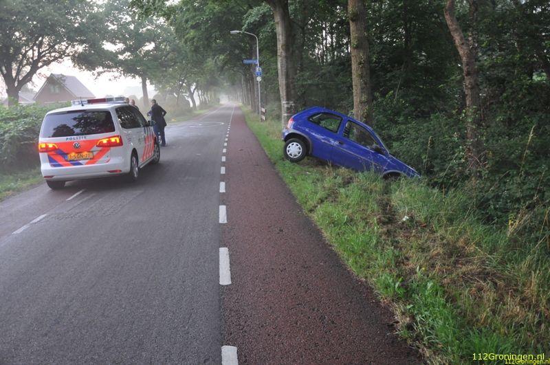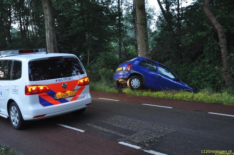 Daarna heeft hij zich uit de voeten gemaakt. Omstreeks kwart voor vijf vannacht kreeg de politie een melding van een ongeval op de Kolonieweg. Daar stond een auto die van de weg was geraakt, half in de sloot. Er was niemand meer bij aanwezig.