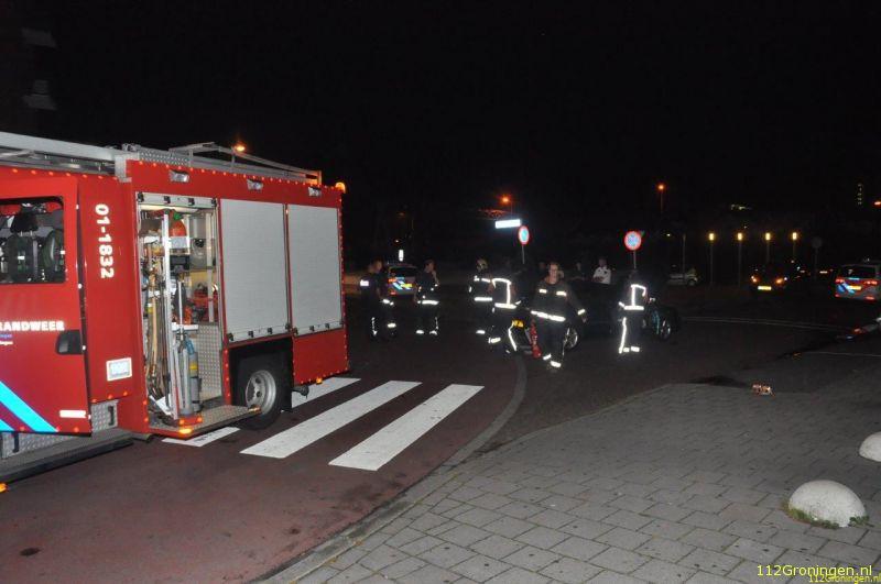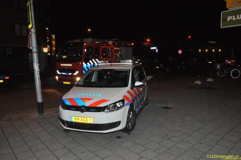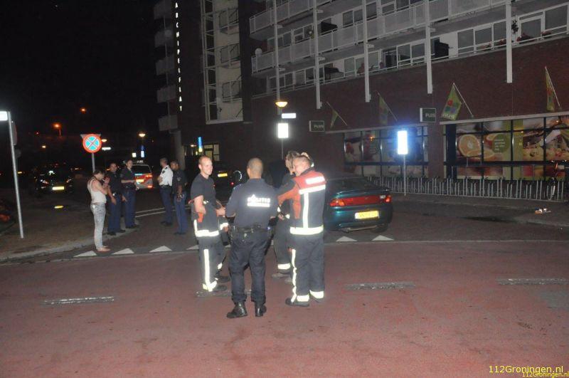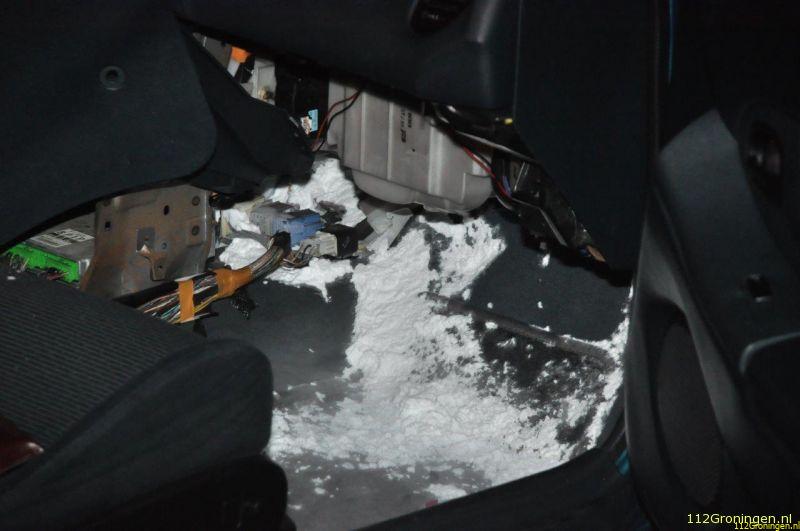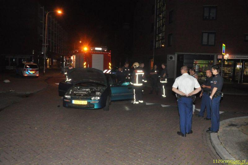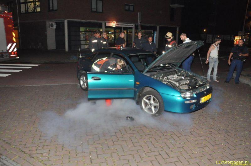 Groningen - Voor een supermarkt vlakbij de Bonairestraat kreeg een auto kortsluiting in de bedrading bij het voeteneind van de bijrijder.