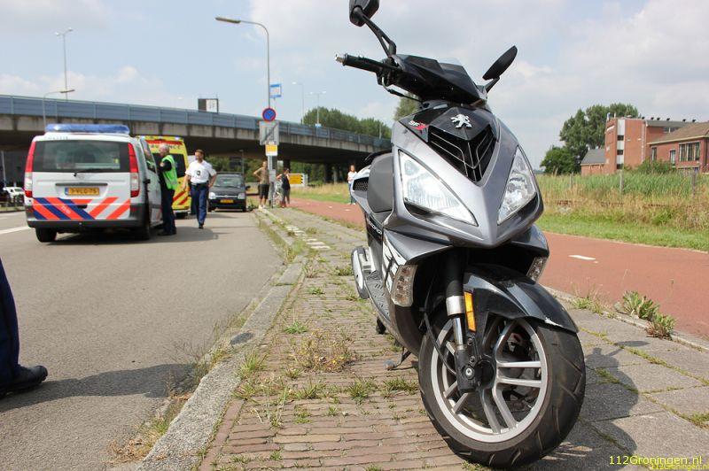 Groningen - Op de Peizerweg in Groningen is ter hoogte van de spoorwegovergang donderdagmiddag een brommerrijder gewond geraakt.