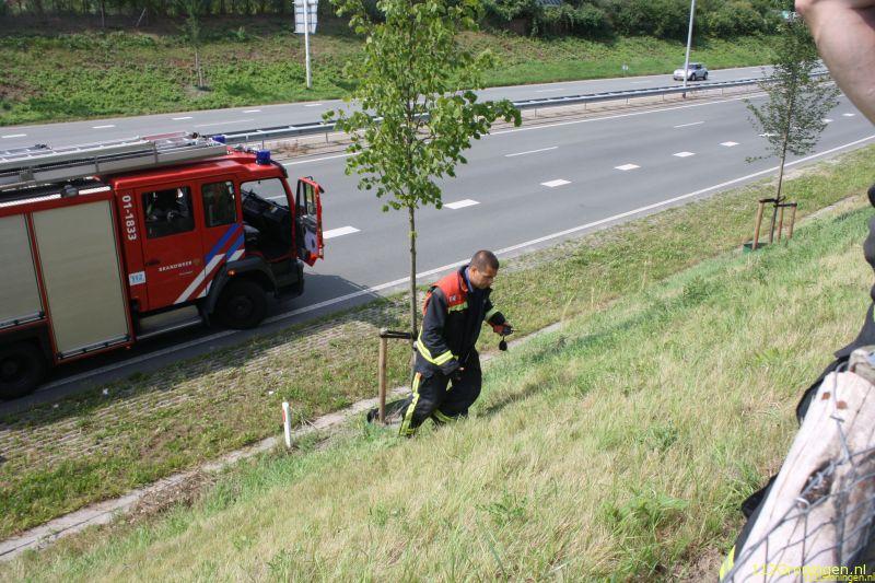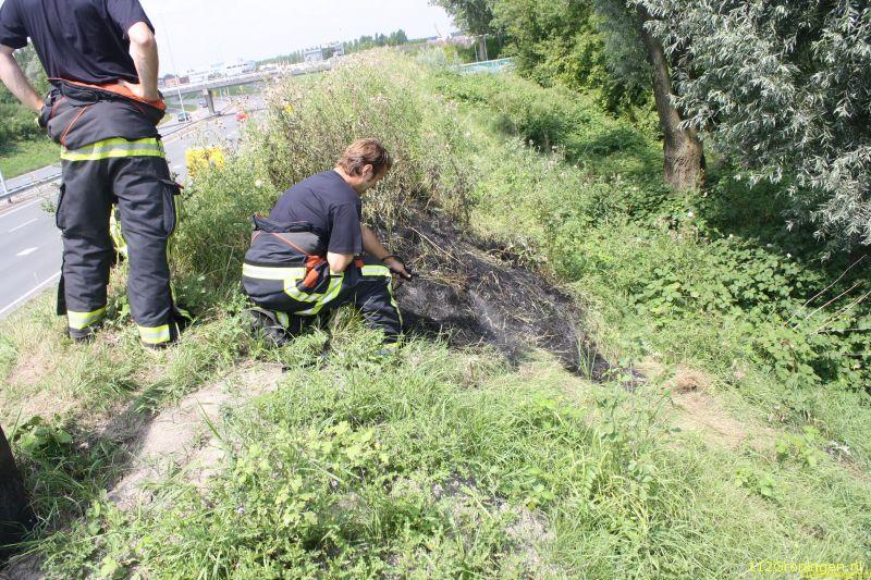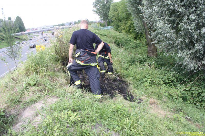 Groningen - Vrijdagmiddag rond 13:30 werd de brandweer opgeroepen voor een berm/ruigte brand langs de N46 Beneluxweg in het oosten van de stad.