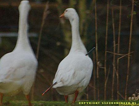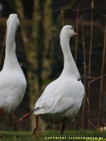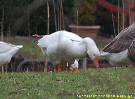 Groningen – Aan het Roerdomp nabij de Piccardhofplas werd vanmiddag door de politie een gans aangetroffen die doorboord was met een pijl. De brandweer kon de gans niet vangen omdat hij steeds vluchtte, maar het is natuurlijk wel een zeer kwalijke zaak dat ganzen beschoten worden met pijl en boog. De pijl zat zo door zijn vleugel heen dat hij niet meer kan vliegen. Mogelijk wordt op een andere dag verder gezocht naar de gans en gaan ze hem verlossen van de pijl. De Dierenambulance kwam ook ter plaatse maar kon ook verder niets doen.