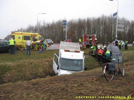 Stadskanaal – Bij een verkeersongeval in Stadskanaal zijn vrijdagmiddag vier personen gewond geraakt. Een automobilist (leeftijd en woonplaats onbekend) gaf op de kruising van de Van Boekerenweg met de A.G. Wildervanckweg geen voorrang aan een 51-jarige bestuurder van een bedrijfsauto. Deze bestuurder uit Borgercompagnie kon de aanrijding niet voorkomen. Door de aanrijding kwamen beide voertuigen in een sloot tot stilstand. Hierbij raakten naast beide bestuurders ook de inzittende van de personenauto en de bijrijder van de bedrijfsauto gewond. Alle vier de personen zijn naar een ziekenhuis gebracht.
