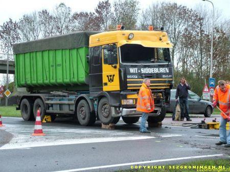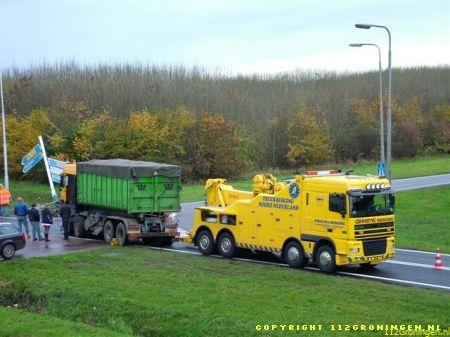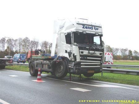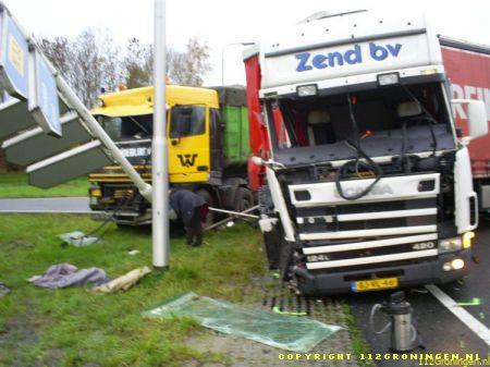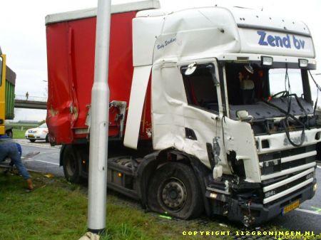 Bij een aanrijding op de N33 tussen twee vrachtwagens is vrijdagochtend een 42-jarige Duitse trucker gewond geraakt. De Duitser vloog door de voorruit van zijn wagen en raakte lichtgewond. Het gebeurde doordat de ene chauffeur niet goed oplette. Er was veel rommel op de weg na de aanrijding.