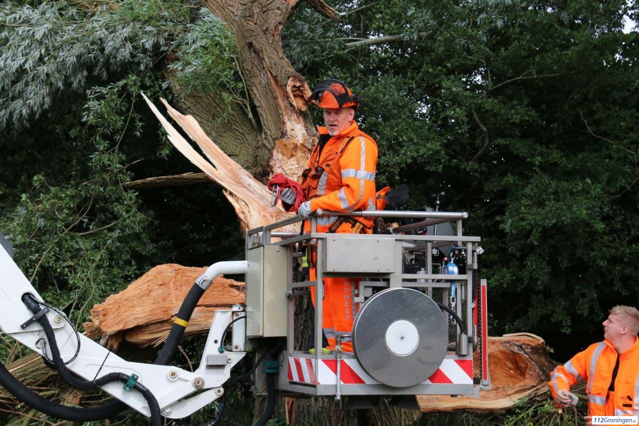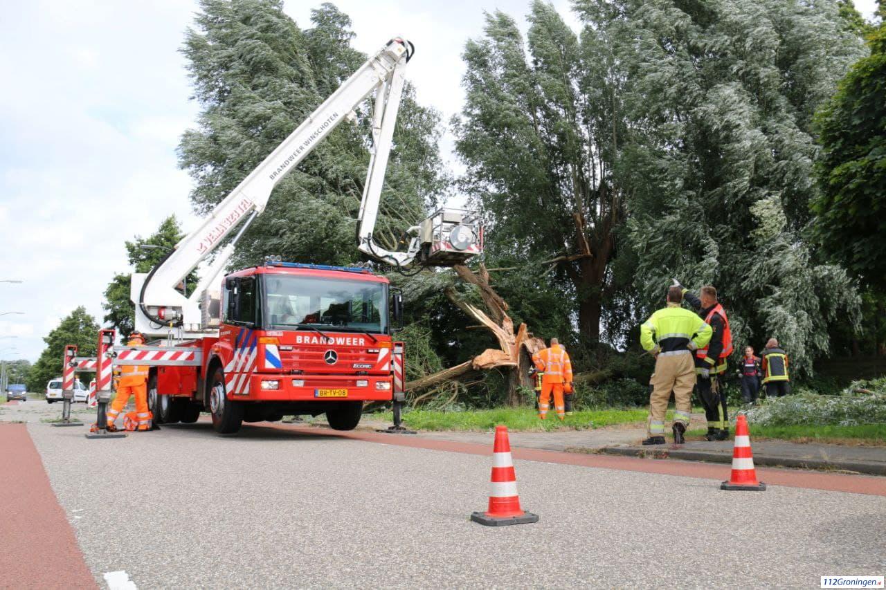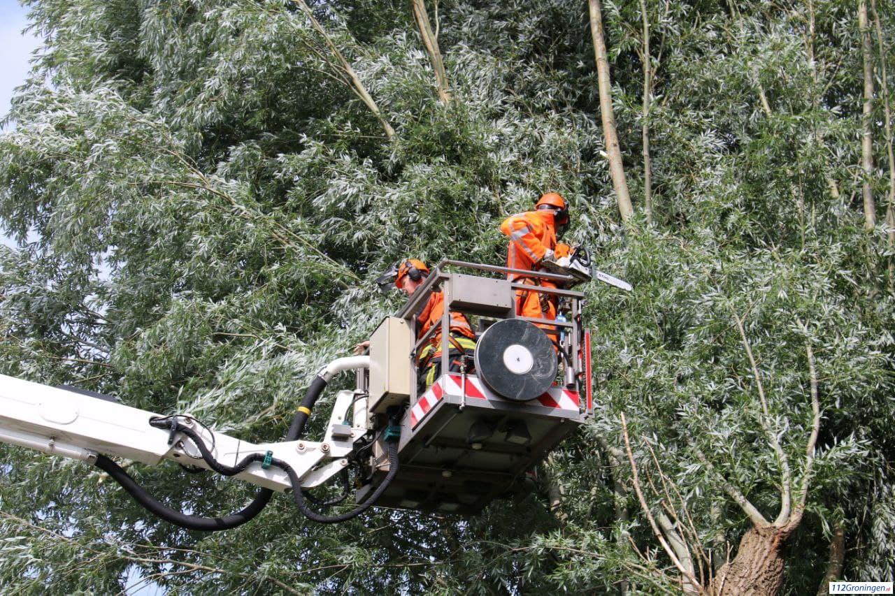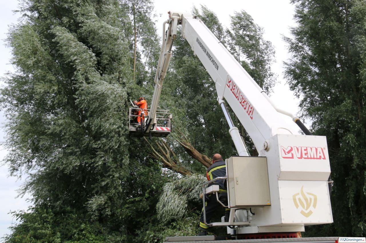 Eenmaal ter plaatse bleek er een grote boom door de harde wind van vanmiddag kapot te zijn gewaaid. De brandweer rukte met een hoogwerker en tankautospuit uit, evenals gemeente die ook ter plaatse kwam.