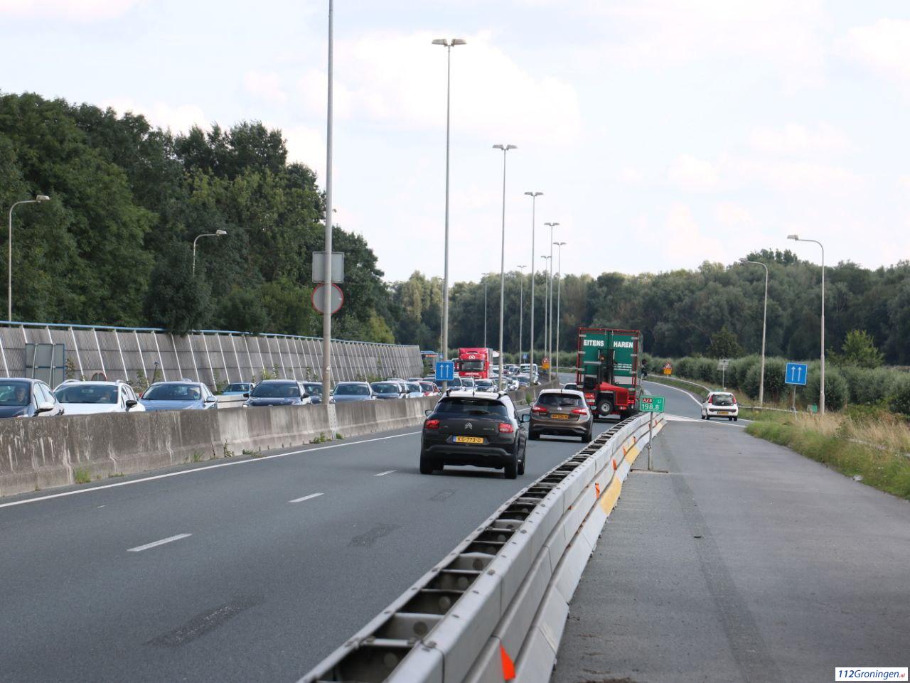 Door een verkeersongeval op de A28 ter hoogte van de afslag Groningen-Zuid is woensdag aan het einde van de middag een forse file ontstaan.